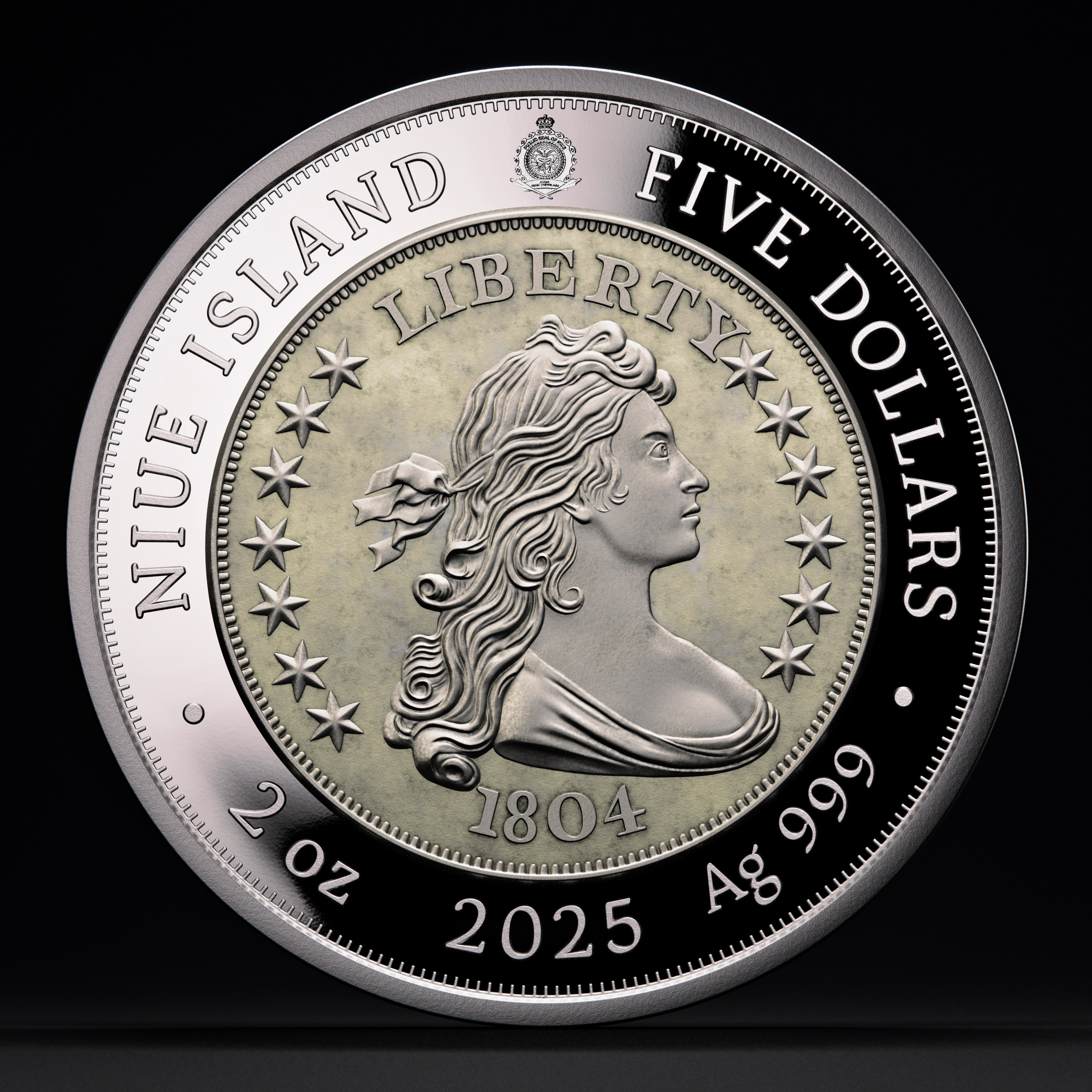 🆕 Niue $5 2025 Silver 999. 2oz Ø50mm Proof / Antique :: GREATEST USA COINS: 1804 Draped bust silver Dollar